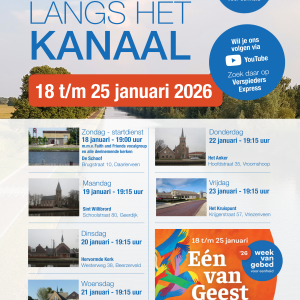 Bidden langs het kanaal De Verspieders Express organiseert vanuit Twenterand regionale missionaire activiteiten en ... 18 - 25 jan 19:00 - 19:15